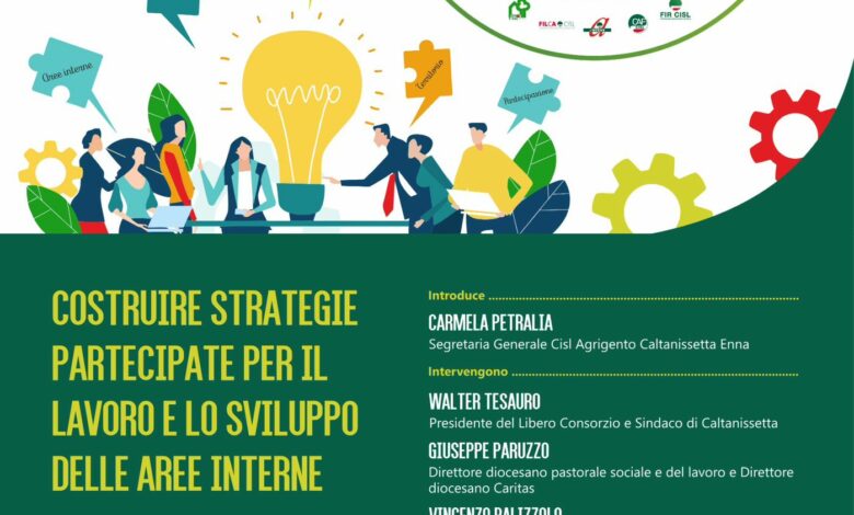 Caltanissetta, “Costruire strategie partecipate per il lavoro e lo sviluppo delle aree interne”: la CISL promuove un confronto sul futuro dei territori interni