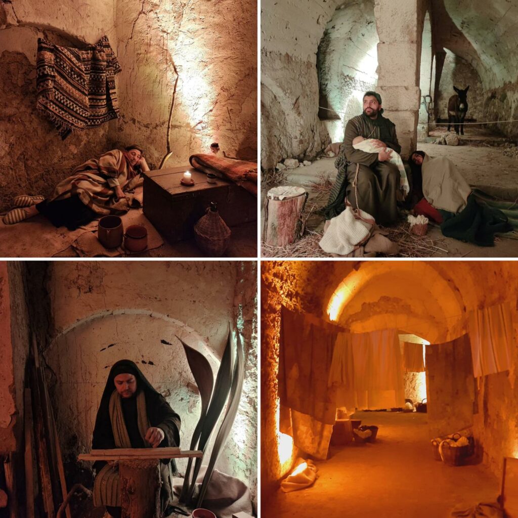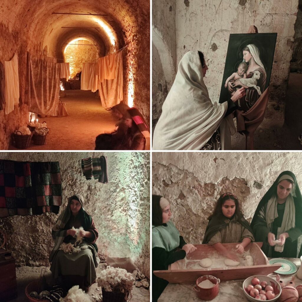 Sin dal calare del sole il percorso si è aperto al pubblico come un viaggio nella Betlemme di duemila anni fa: luci soffuse, silenzi carichi di attesa, antichi mestieri rievocati con cura e una scenografia naturale capace di esaltare la bellezza austera del complesso monumentale. Ogni angolo raccontava una storia, ogni volto sembrava appartenere davvero a un tempo lontano.