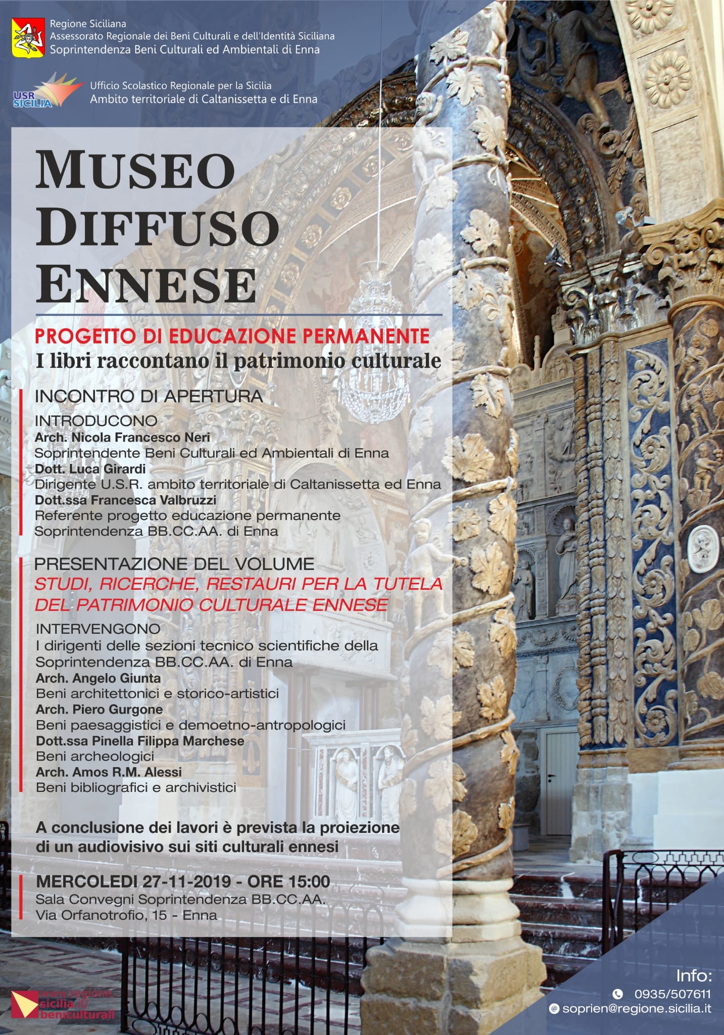 Alle ore 15.00, presso la Soprintendenza dei Beni Culturali ed Ambientali di Enna, si terrà la presentazione del volume “Studi, ricerche, restauri per la tutela del patrimonio culturale ennese”.