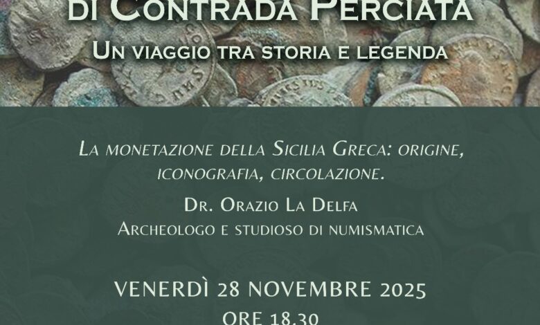 La sede locale di SiciliAntica annuncia un nuovo appuntamento dedicato all’approfondimento della storia antica del territorio. Venerdì 28 novembre 2025, alle ore 18:00, presso la prestigiosa cornice del Circolo di Compagnia di Leonforte, si terrà la conferenza: “Il tesoretto di C.da Perciata. Un viaggio tra storia e leggenda”, con il tema “La monetazione della Sicilia Greca: origine, iconografia, circolazione”.